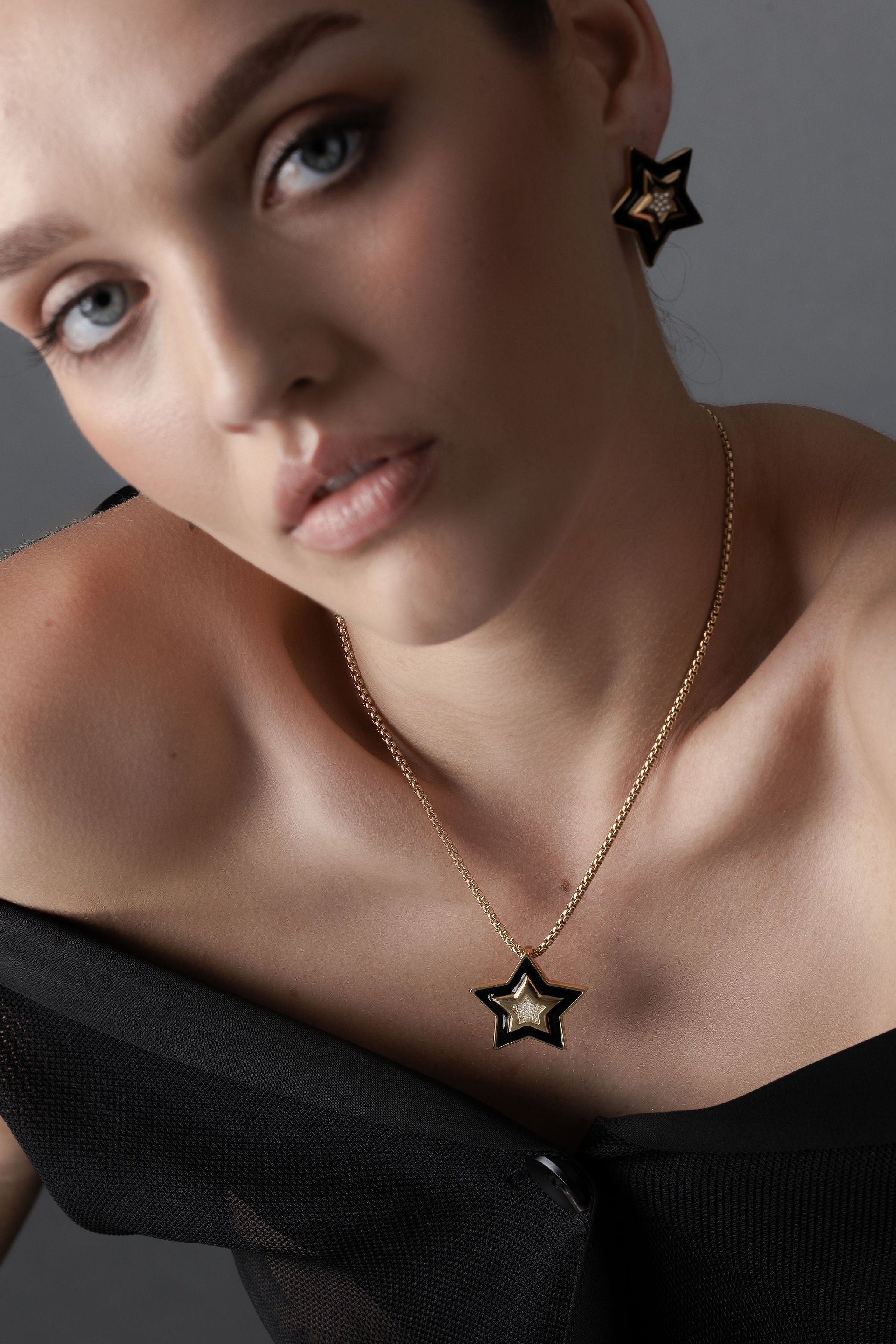 Supernova Earrings Black Enamel + CZ + Gold